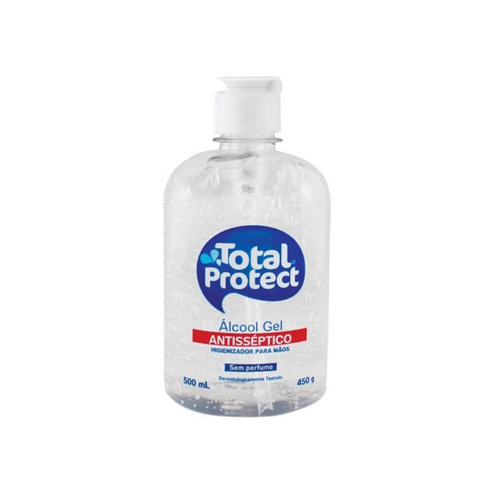O Álcool em Gel Antisséptico Total Protect Higieniza sua mão sem água, sabão ou toalha. Mata 99,9% das bactérias comuns. Aprovado pela Anvisa. Deixa as mãos suaves e refrescantes.