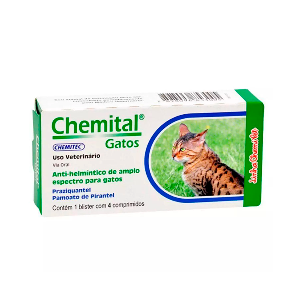 Chemital® Gatos é um anti-helmíntico de amplo espectro para gatos, que combate com eficácia formas adultas e larvárias de cestóides, ancilostomídeos e ascarídeos que infestam os gatos. Chemital® Gatos possui, além de excelente atuação, uma margem de segurança ampla que permite sua administração mesmo para fêmeas prenhes em qualquer época da gestação.