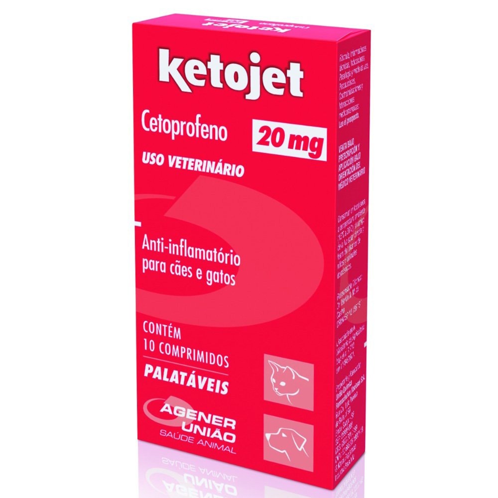 O Anti-Infamatório Agener União Ketojet Cetoprofeno 10 comprimidos é indicado para cães e gatos. Possui sistema de tratamento das dores de origem inflamatória, como: artroses, artrites, traumatismos, entorses, luxações, hérnias de disco, edema, febres e intervenções cirúrgicas. Devolvendo a alegria e saúde novamente ao seu pet.