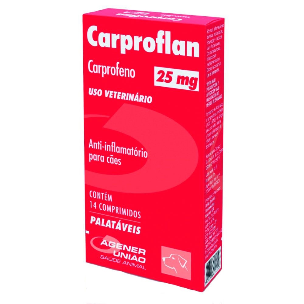 O Anti-inflamatório Carproflan 25mg com 14 Comprimidos contém atividades analgésicas, anti inflamatórias e antipireticas, devido a base química carprofeno. Foi desenvolvido para cães que sofrem de dores decorrentes de processos inflamatórios, muito frequentes com a idade e, principalmente, entre os animais com obesidade ou de condições propicia a um esforço mecânico maior das articulações e da coluna vertebral. Seu principio ativo é considerado referência para a determinação da ação anti inflamatória e pode ser utilizado com segurança, sem provocar efeitos colaterais. Proporciona maior proteção das articulações, permitindo que o cão mantenha suas atividades, resultando em maior qualidade de vida.