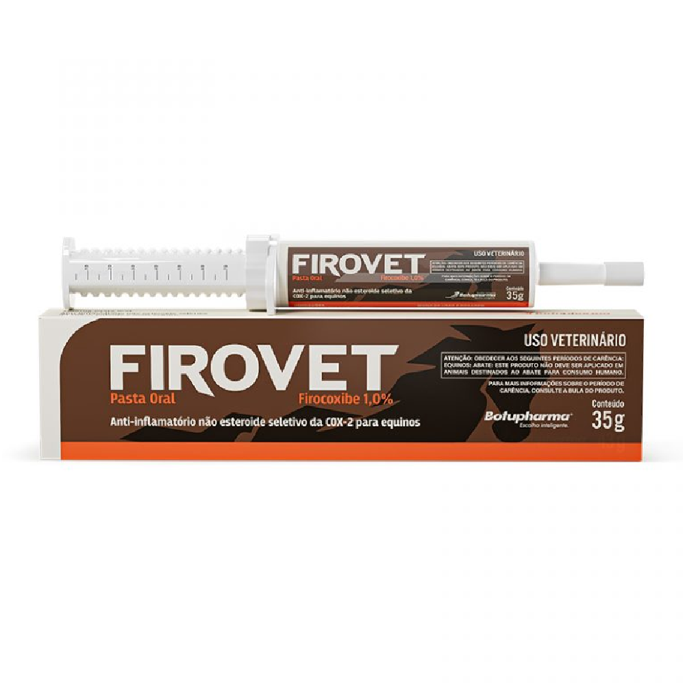 Detalhes do Produto Explore um novo padrão de cuidado equino com o Anti-Inflamatório Firovet Horse em Pasta 35g. Esta pasta contém Firocoxibe, um fármaco anti-inflamatório não esteroide que oferece propriedades analgésicas, anti-inflamatórias e antipiréticas, proporcionando alívio eficaz da dor e da inflamação em equinos.
