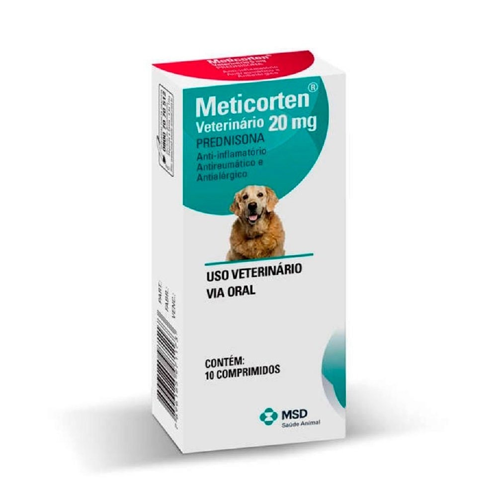 O Anti-Inflamatório MSD Meticorten Vet 10 Comprimidos Cães é indicado para cães e gatos, no tratamento de patologias endócrinas, distúrbios músculo-esqueléticos, doenças reumáticas, do colágeno, dermatológicas, alérgicas, oftálmicas, respiratórias, hematológicas e outras que respondem à terapia com corticóides. É um anti-inflamatório esteroidal com uma potente ação anti-inflamatória, antirreumática e antialérgica no tratamento de distúrbios que respondem aos corticosteroides. O início da ação é rápido, e seus efeitos começam a ser observados 1 hora após a administração. Contém 5 mg do glicocorticóide sintético prednisona, que quando administrado oralmente é rapidamente convertido na prednisolona biologicamente ativa.