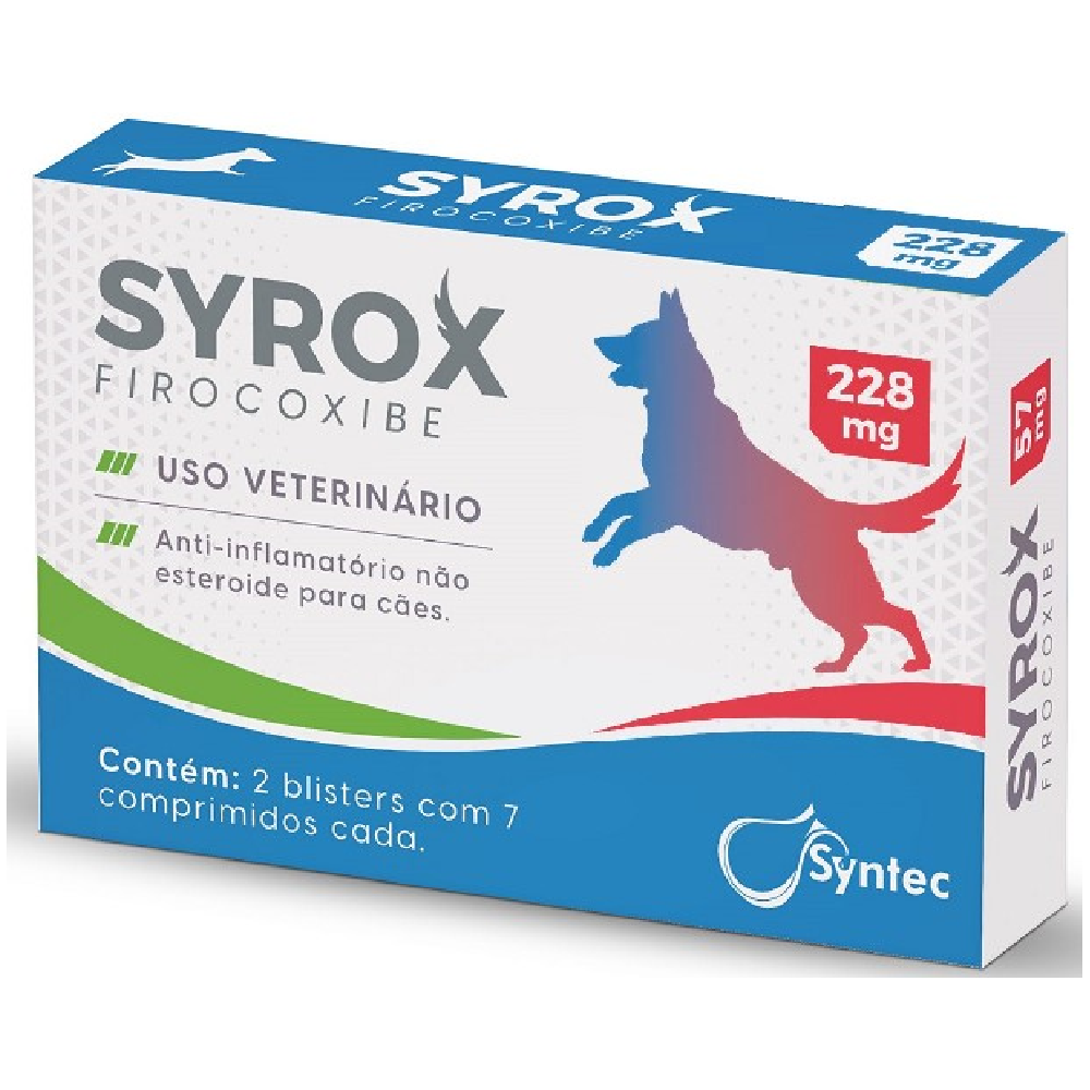 O firocoxibe presente no Syrox atua inibindo a produção de substâncias que causam dor e inflamação no organismo do cão. Dessa forma, ele alivia os sintomas e promove o bem-estar do animal.