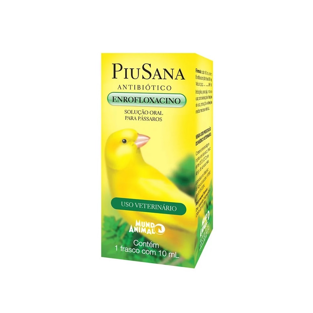 Detalhes do Produto Antibiótico Piusana é um Antibiótico de amplo espectro, indicado para pássaros no tratamento das infecções causadas por bactérias gram-positivas e gram-negativas, espiroquetas e micoplasmas sensíveis ao enrofloxacino.