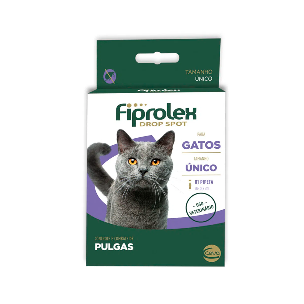O Fiprolex Drop Spot (0,5ml) para gatos, da marca Ceva, é um produto a base de Fipronil utilizado para combater pulgas e carrapatos dos gatos. Um ectoparasita de rápido efeito letal a base de fipronil que protege por até 5 semanas. Pode ser considerado um importante auxiliar no controle das infestações por cestódeos (Dipylidium caninum) que acometem os gatos, uma vez que as pulgas são hospedeiros intermediários destes parasitas.