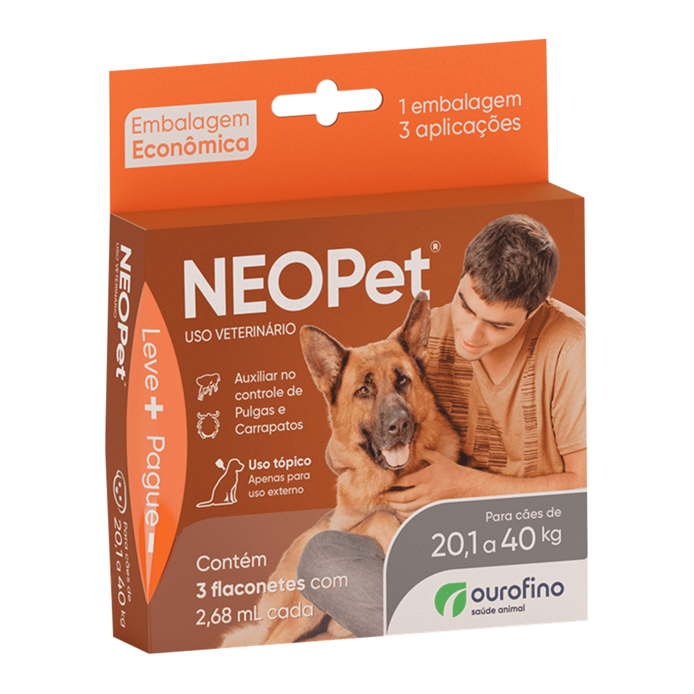 O Neopet é aplicado diretamente na pele do cão, entre as omoplatas. A substância ativa se espalha pela pele e pelo pelo do animal, eliminando os parasitas e impedindo novas infestações.
