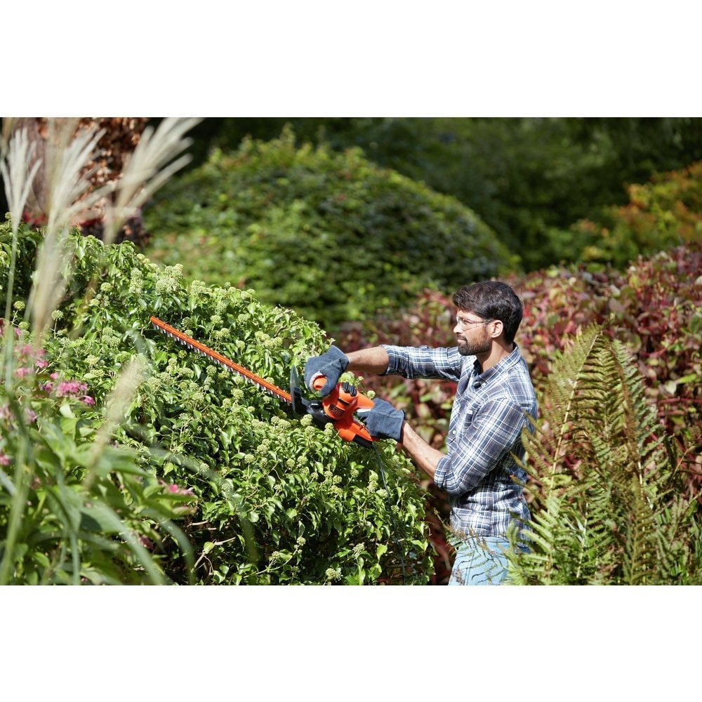 Aparador de cerca viva, com potente motor de 420W, comprimento da lâmina de 45cm idel para podas de arbustos de pequeno porte. Possui espaço entre os dentes de 16mm, desenho ergonomico 10% mais leve que os modelos anteriores, guarda de proteção para segurança e punho auxiliar em forma de D para maior comodidade e controle.