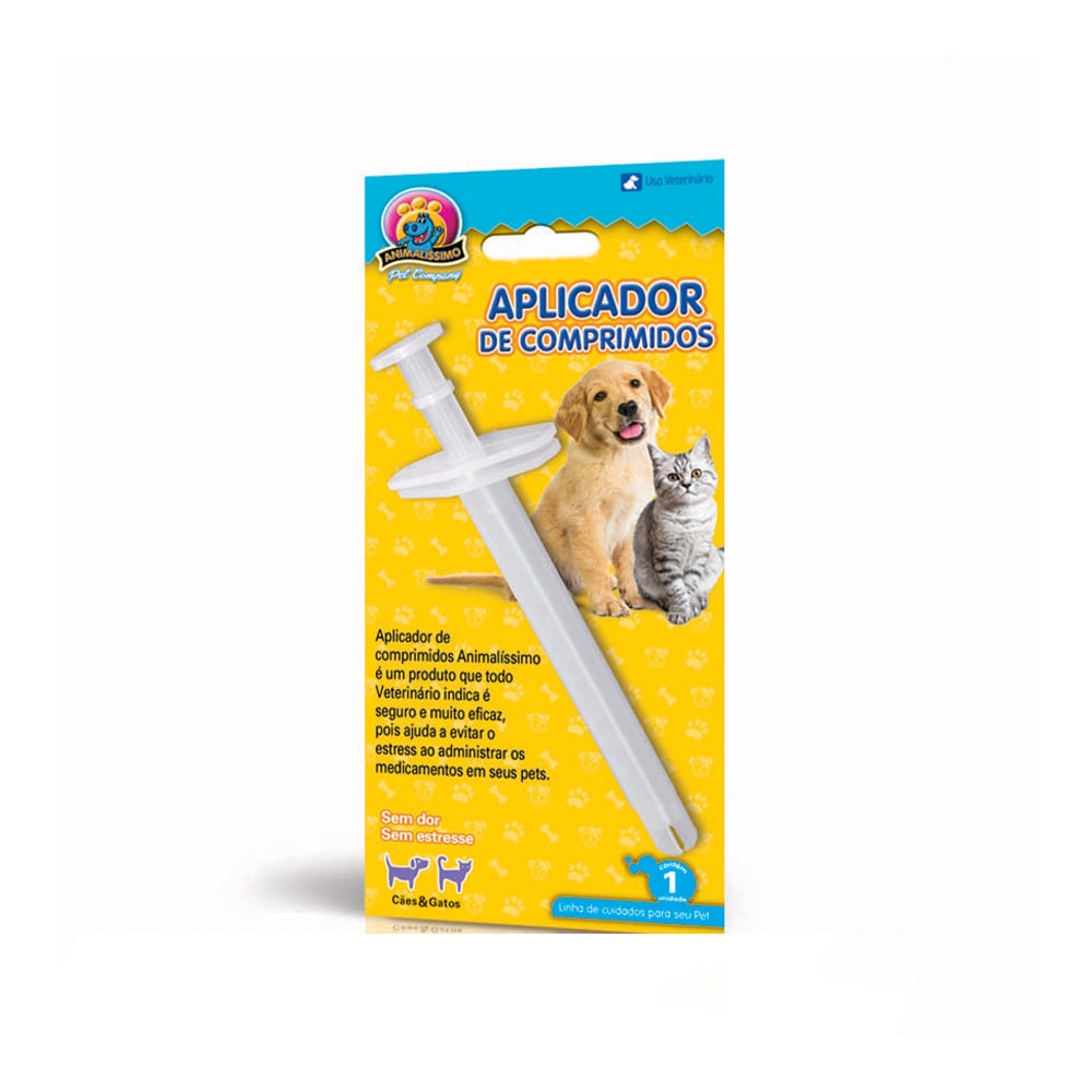 O Aplicador de Comprimidos é um acessório prático, seguro e eficaz, desenvolvido para facilitar a administração oral de medicamentos em cães e gatos. Recomendado por médicos veterinários, o produto ajuda a reduzir o estresse do tutor e do animal durante o processo de medicação, promovendo mais segurança e precisão no momento da aplicação.