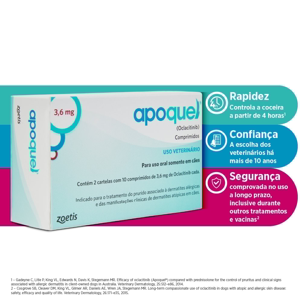 Apoquel® é um medicamento veterinário em comprimidos, de uso oral, indicado para o tratamento do prurido (coceira) associado às dermatites alérgicas e para o tratamento das manifestações clínicas da dermatite atópica em cães. :contentReference[oaicite:0]{index=0}