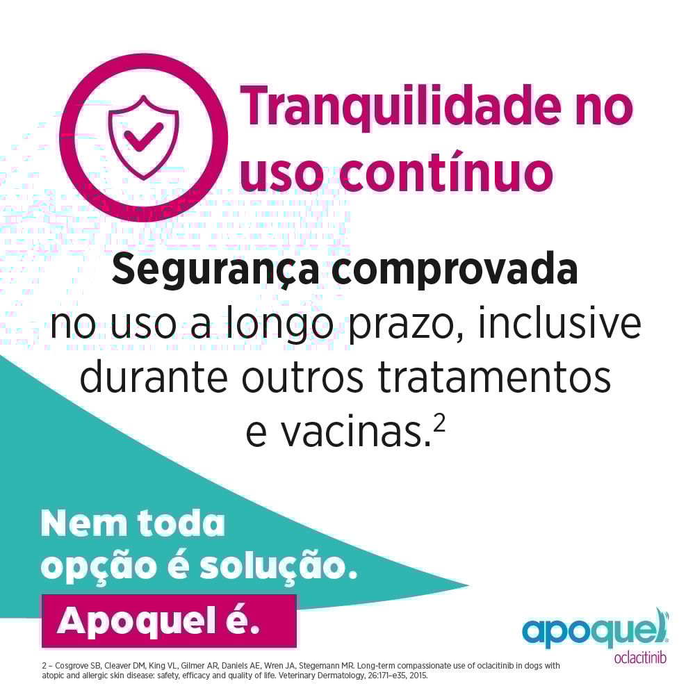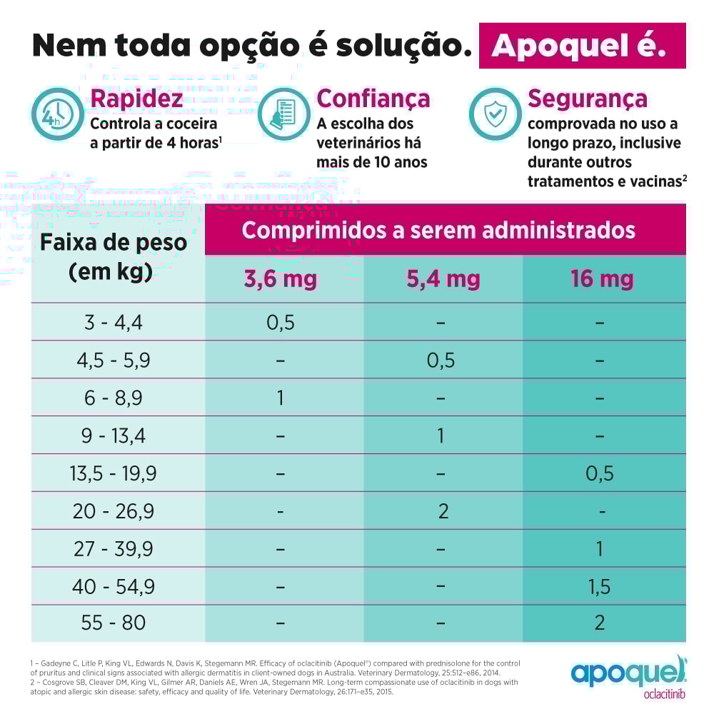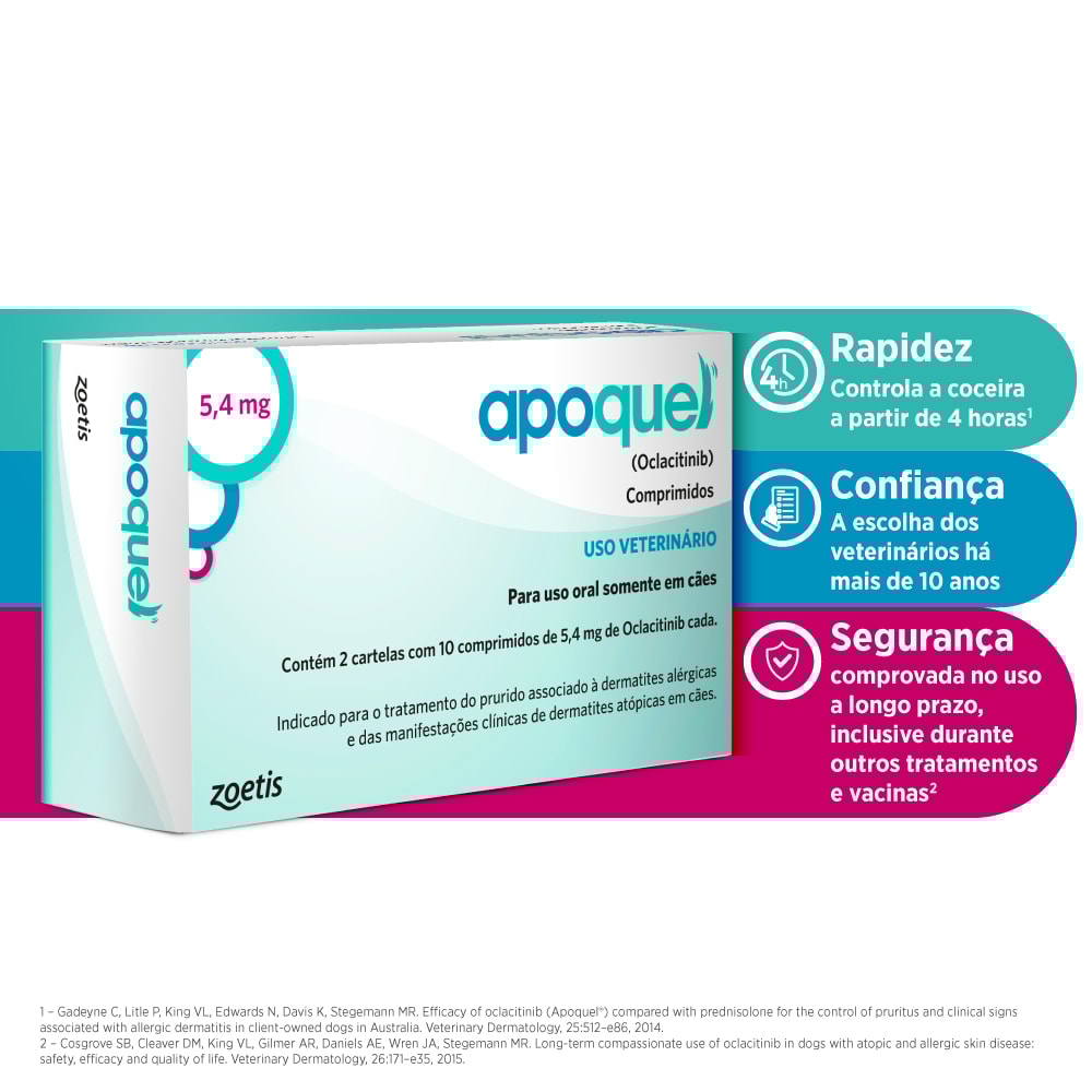 Apoquel® é um medicamento veterinário em comprimidos, de uso oral, indicado para o tratamento do prurido (coceira) associado às dermatites alérgicas e para o tratamento das manifestações clínicas da dermatite atópica em cães. :contentReference[oaicite:0]{index=0}