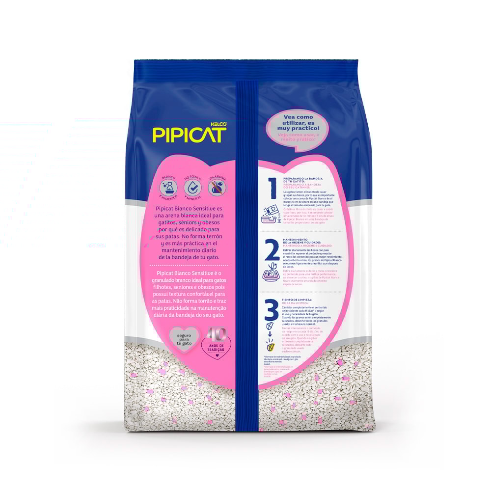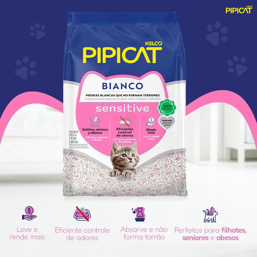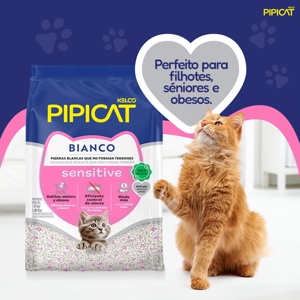 O Pipicat Bianco Sensitive é a escolha ideal para tutores que buscam uma solução delicada e eficiente na hora de cuidar da higiene dos gatos. Desenvolvido especialmente para gatos filhotes, idosos ou com sobrepeso, sua fórmula com textura suave respeita a sensibilidade das patinhas, oferecendo muito mais bem-estar ao seu felino.