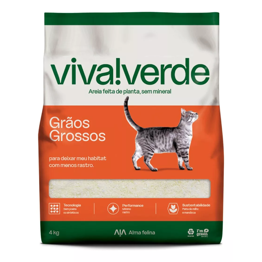 Proporcione ao seu felino uma experiência de higiene superior com a Areia Higiênica Biodegradável Viva Verde Grãos Grossos - a escolha consciente para um gato feliz e um planeta mais limpo!