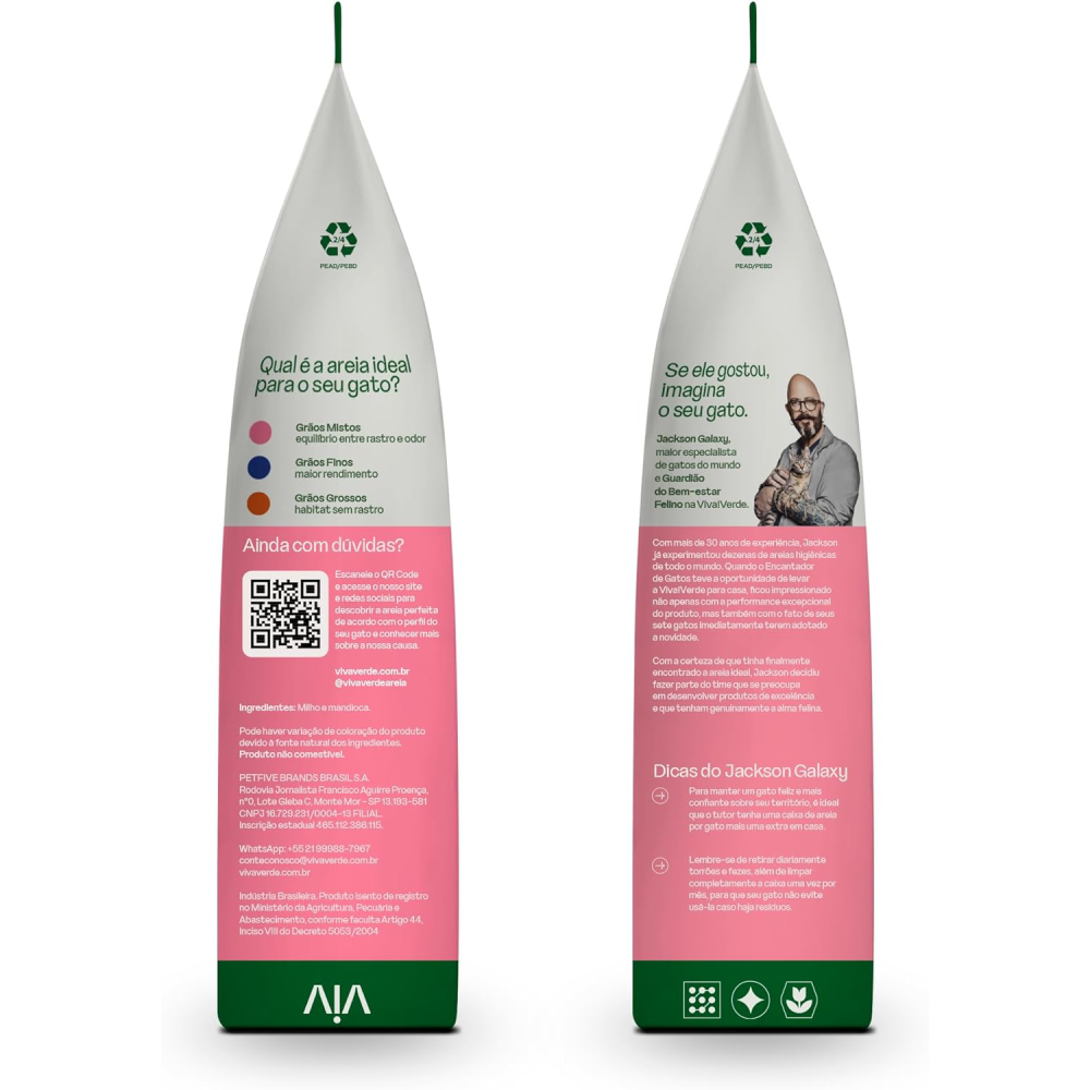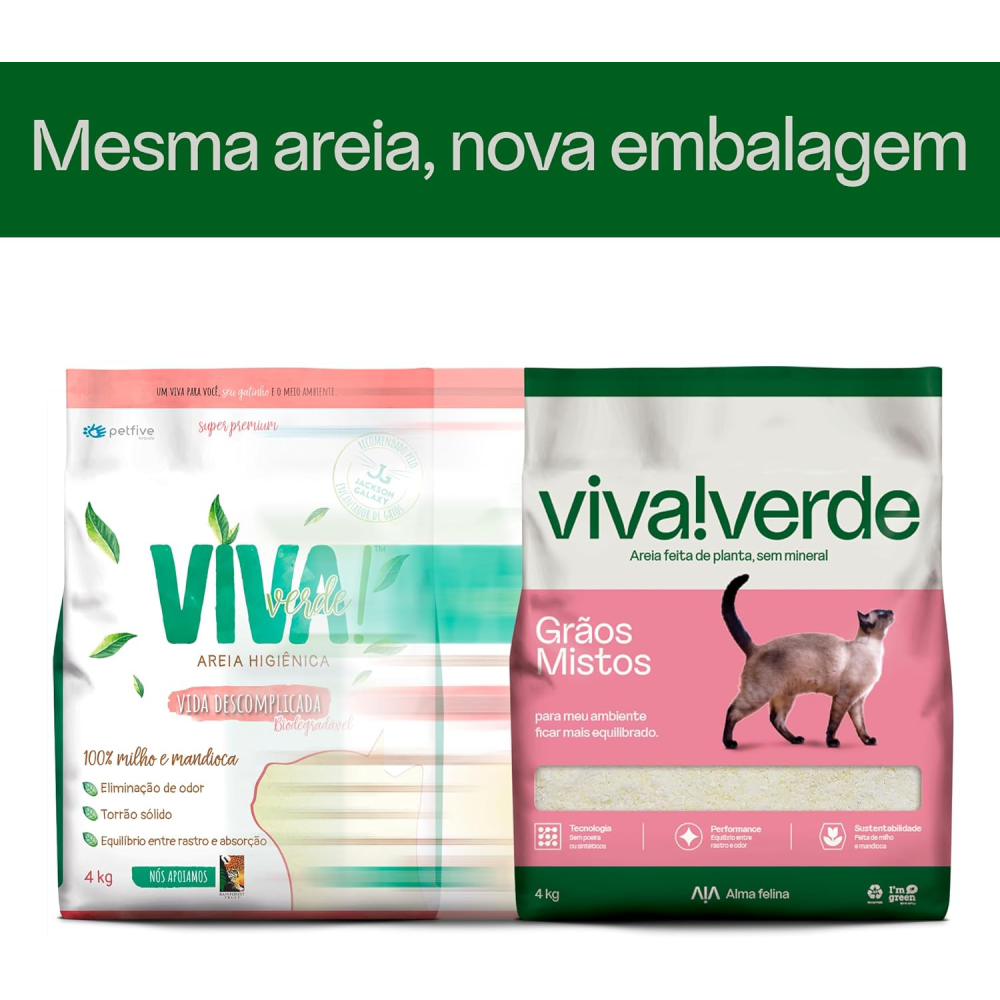 Proporcione ao seu felino uma experiência de higiene superior com a Areia Higiênica Biodegradável Viva Verde Grãos Mistos - uma escolha consciente e sustentável para o cuidado do seu gato e do planeta!