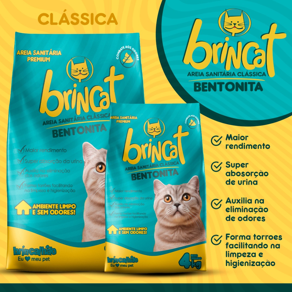 Entre na diversão com a Areia Higiênica Brincat Bentonita Classic da Brincalhão Pet! Com esta areia, a limpeza da caixa de areia do seu gato se tornará uma brincadeira!