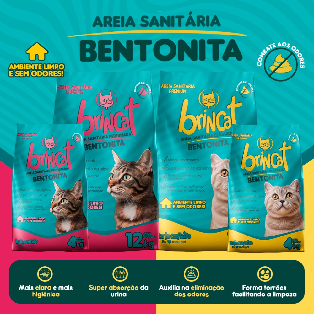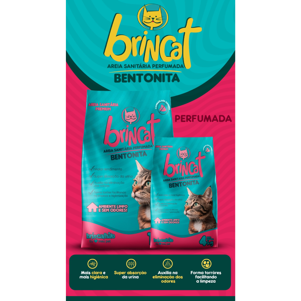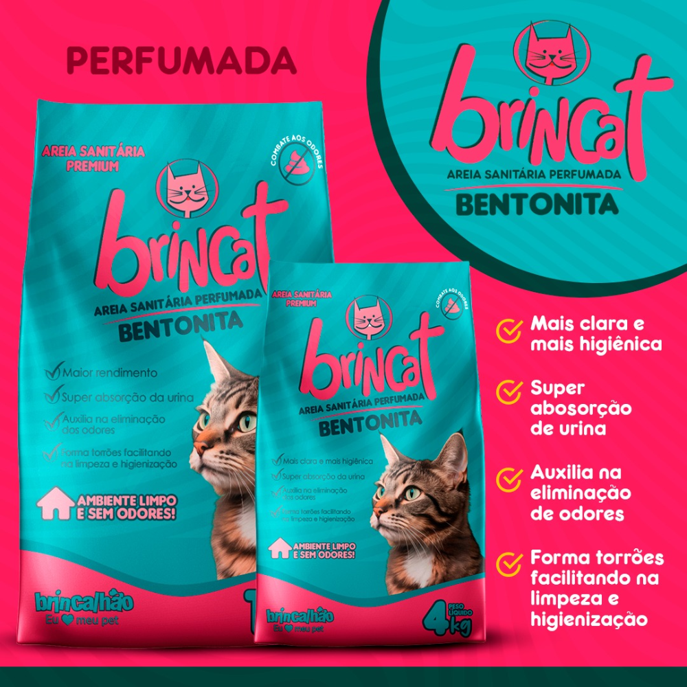 Prepare-se para transformar a rotina de higiene do seu gato em uma experiência perfumada e agradável com a Areia Higiênica Brincat Bentonita Perfumada da Brincalhão Pet!