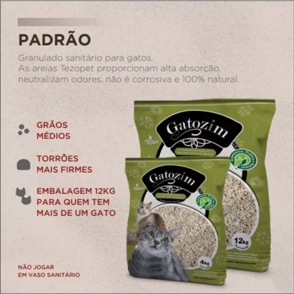 A Areia Higiênica Granulada para Gatos Gatozim é a solução completa para manter o ambiente do seu felino sempre limpo e livre de odores desagradáveis. Desenvolvida com granulado sanitário 100% natural, esta areia para gatos oferece máxima segurança e eficiência para animais de todas as idades.