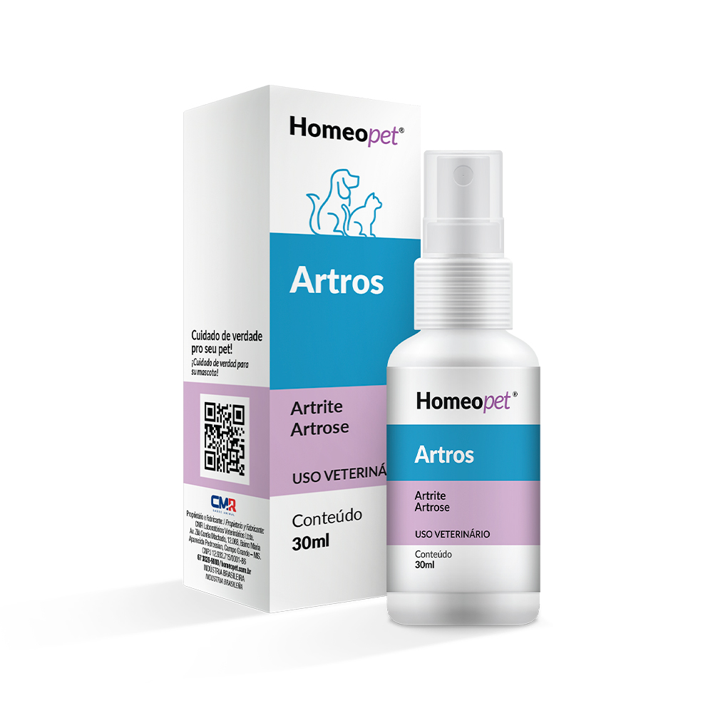 O Homeopet Artros de 30ml é um produto homeopático para o tratamento das Artrites e Artroses de cães e gatos. Reduz a dor, a inflamação e o desconforto causado por alterações articulares.