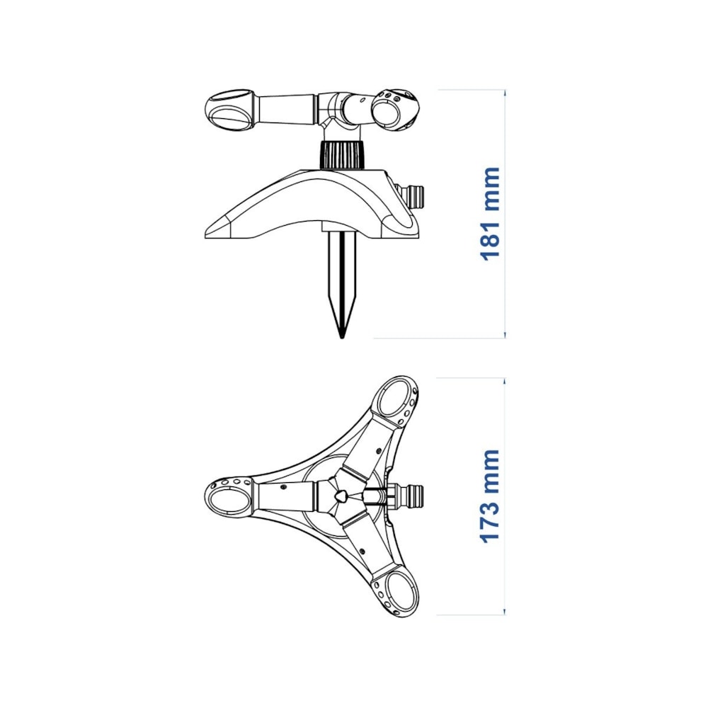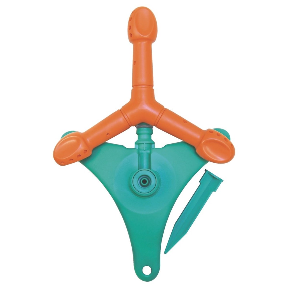 Equipado com 3 braços rotativos em plástico, com terminais ajustáveis para direcionar o jato d'água.