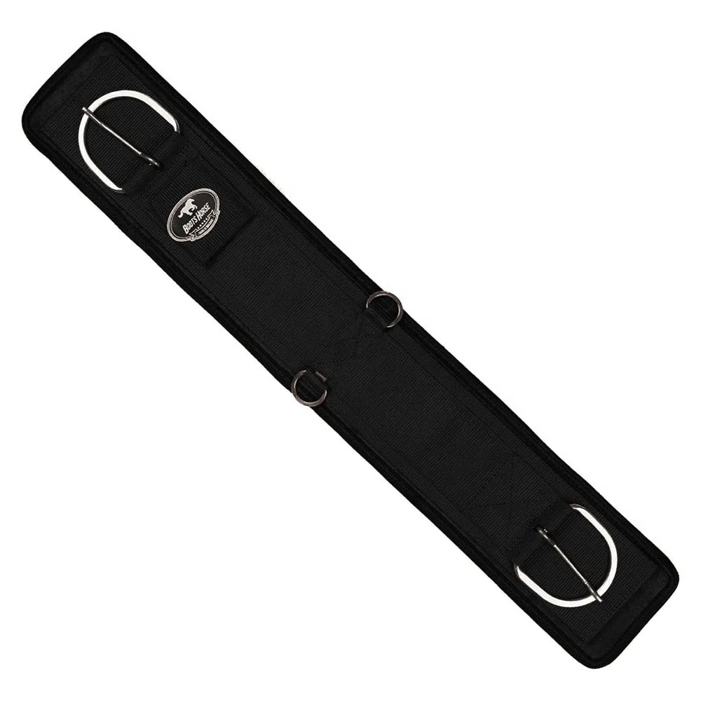 Detalhes do Produto A Barrigueira Dianteira Combat Boots Horse para sela é fabricada em neoprene resistente com costuras reforçadas. Conta com fivelas e argolas em aço inox que não enferrujam. O produto possui argolas no centro da peça para fixação de cabo de gamarra e conexão para a barrigueira traseira.