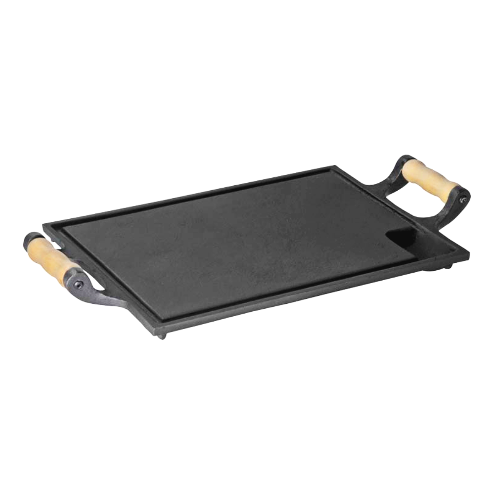 Bifeteira Chapa Ferro Fundido com Alças de Madeira Fundição Libaneza 25x35cm Cod. 12270