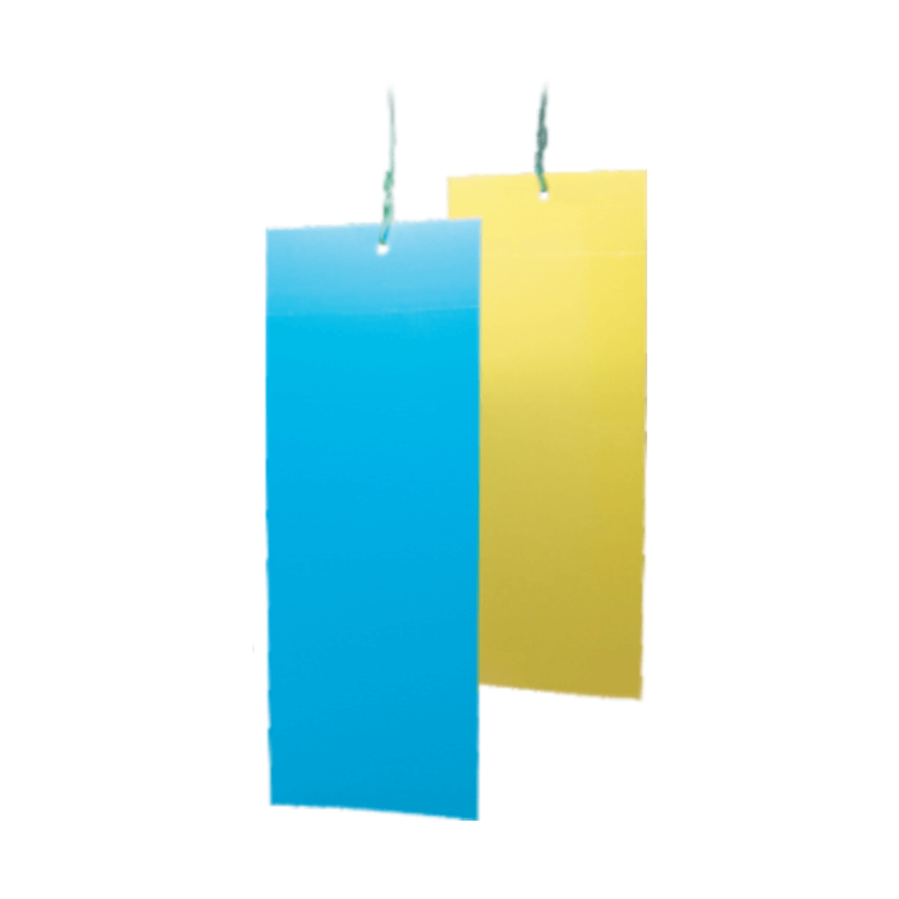 Fita com adesivo em ambas as faces, nas cores azul ou amarela de 24,5 cm de altura X 10 cm de largura.