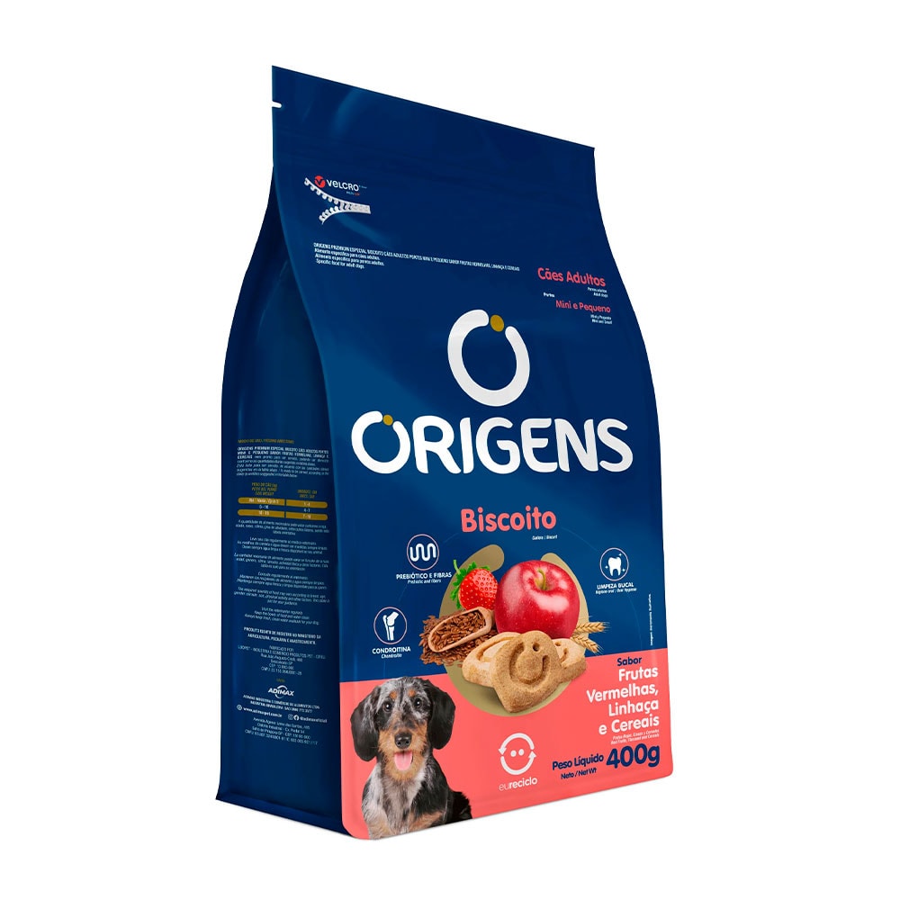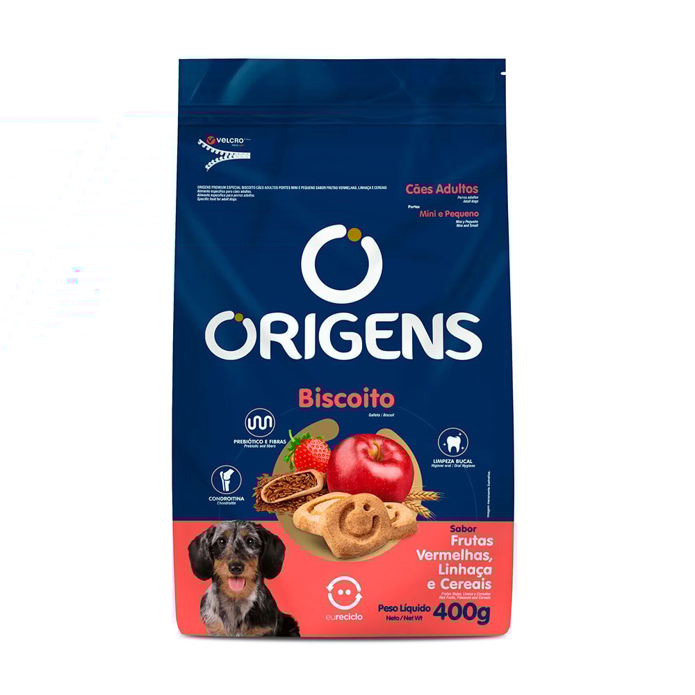 Origens Biscoito é uma linha de alta qualidade para cães filhotes e adultos. Indicado como recompensa e agrado, os biscoitos Origens oferecem variedade de sabores e podem ser encontrados em versões para diferentes portes. É um petisco saudável e saboroso com ingredientes como banana, maçã, aveia, frutas vermelhas, linhaça, peru e cereais.