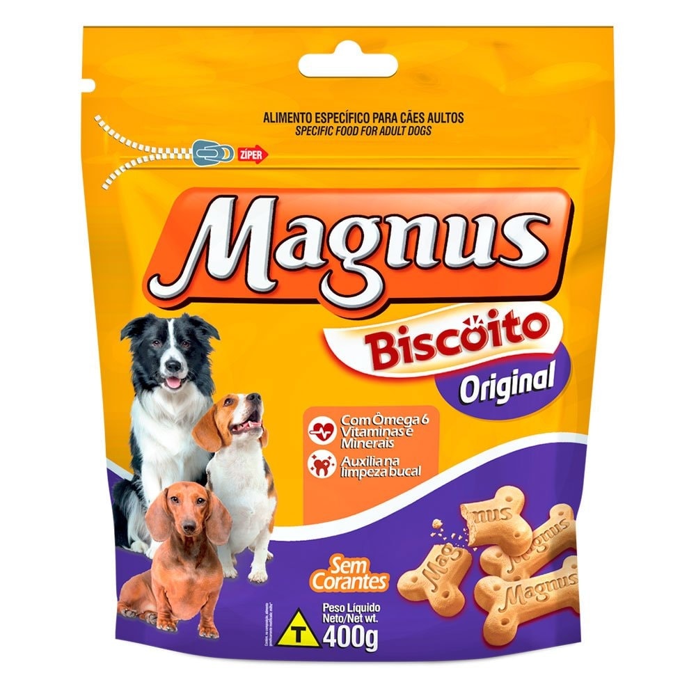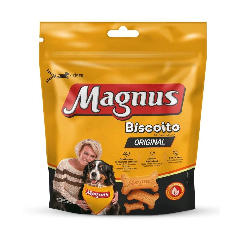 Biscoito Original Magnus Cães Adultos é um biscoito especifico para cães de todos os portes, elaborado com ingredientes especialmente selecionados que proporciona um sabor inigualável, além de auxiliar na limpeza bucal, Pode ser oferecido ao seu cão como demonstração de carinho, em momentos de diversão ou como recompensa em treinamentos.