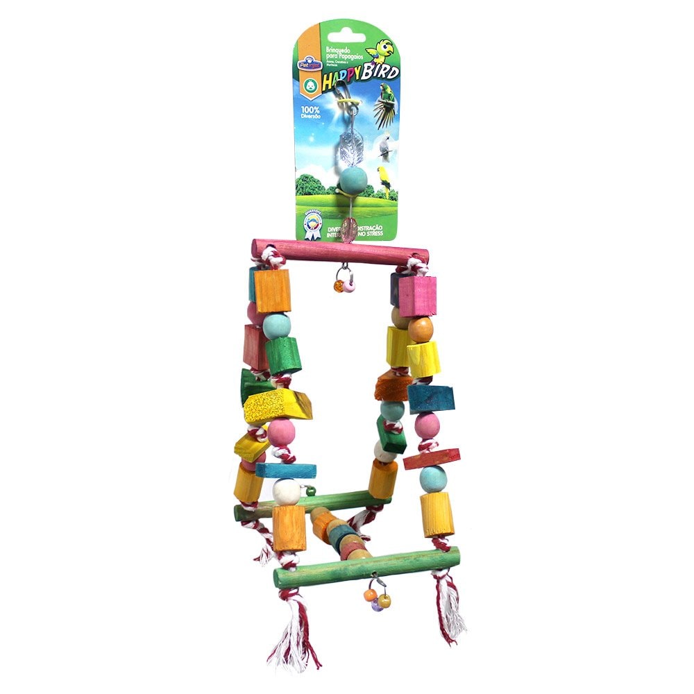 Brinquedo para pássaros em madeira e corda