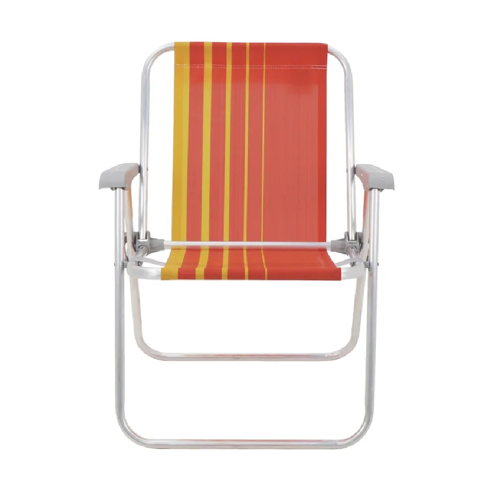 Adicione a Cadeira de Praia Tramontina Alta Laranja e Amarelo em Alumínio 92900001 ao seu carrinho de compras e aproveite o verão ao máximo!