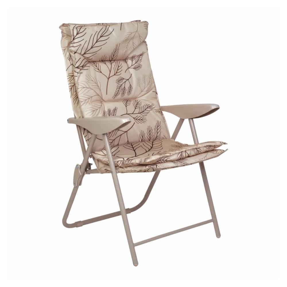 Dobrável e reclinável em 4 posições, sua estrutura em aço possui acabamento em pintura epóxi à pó e tela 100% poliéster, que suporta até 100kg de peso.