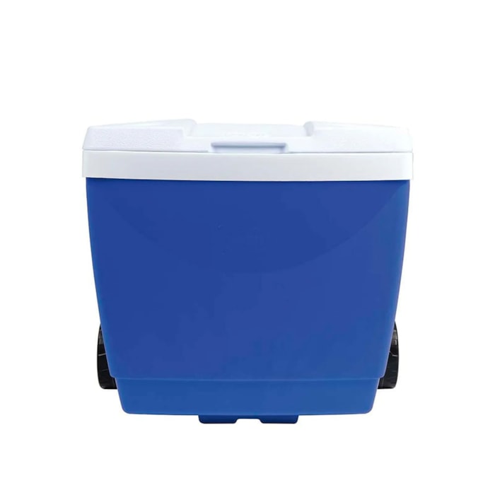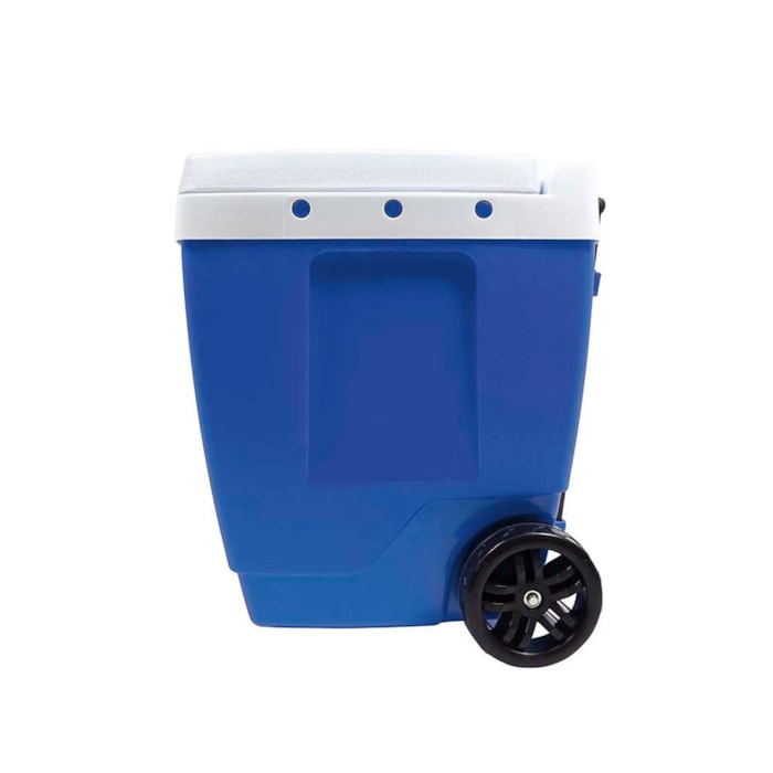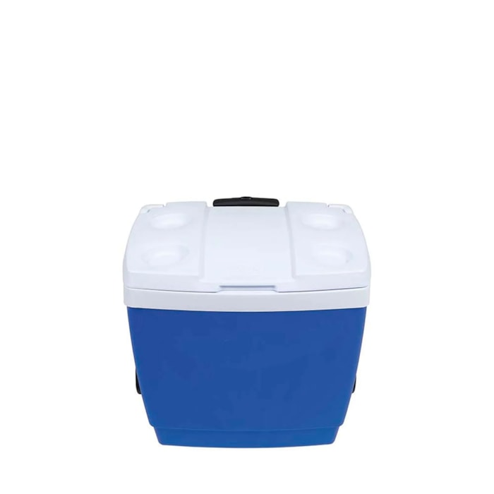 A alça retrátil com três níveis de altura e as rodas largas de rolagem suave oferecem mobilidade total, permitindo o transporte fácil mesmo em terrenos irregulares. Sua tampa articulada, fixada à estrutura, evita o contato com o chão e conta com quatro porta-copos integrados, agregando ainda mais praticidade durante o uso.