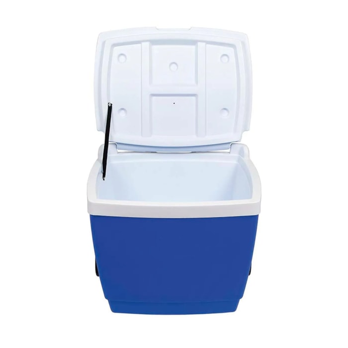 O amplo espaço interno comporta até 56 latinhas de 350 ml, 44 latas de 473 ml, 29 garrafas de 600 ml ou 8 garrafas de 2 litros, seja em pé ou deitadas — sem considerar o uso de gelo. A combinação de design funcional e acabamento na cor azul torna a Caixa Térmica Mor uma opção completa para quem busca desempenho e estilo.