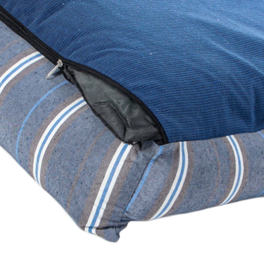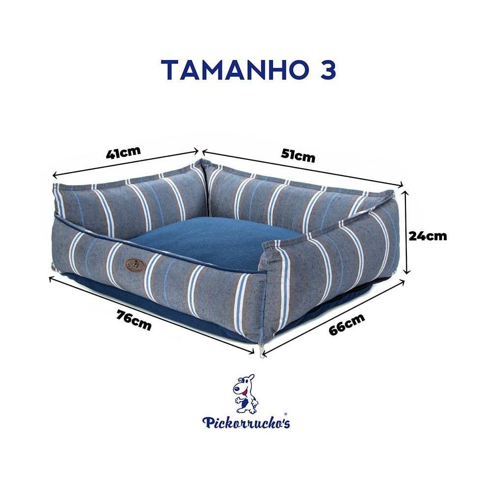 A Cama Reciclato Risk Azul da Pickorruchos é ousada na estampa de cores e bordados. Toda com zíper para retirar o enchimento e lavar apenas a capa. Proporciona maior conforto para o seu amigo de quatro patas, por possuir um design elegante e delicado, além da almofada fixa, podendo ser usada dos dois lados. Essa caminha garante o conforto que seu pet merece na hora de dormir!