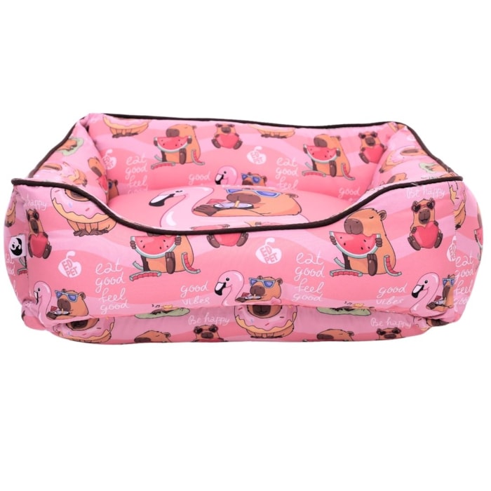 Sua estampa exclusiva de capivaras traz um visual moderno, divertido e cheio de charme, deixando o cantinho do seu pet muito mais estiloso. Para facilitar a rotina, o modelo conta com quatro zíperes laterais e um zíper central, permitindo retirar todo o enchimento e lavar somente a capa. É praticidade real para manter tudo sempre limpo e higienizado.