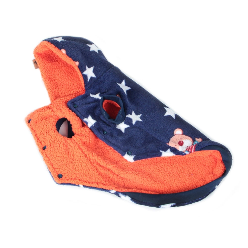 Modelo que agasalha todo o tórax e com botões de pressão para o fechamento. A Capa Polar é confeccionada em fleece estampado e forro carneirinho, com punhos em lycra para maior conforto.