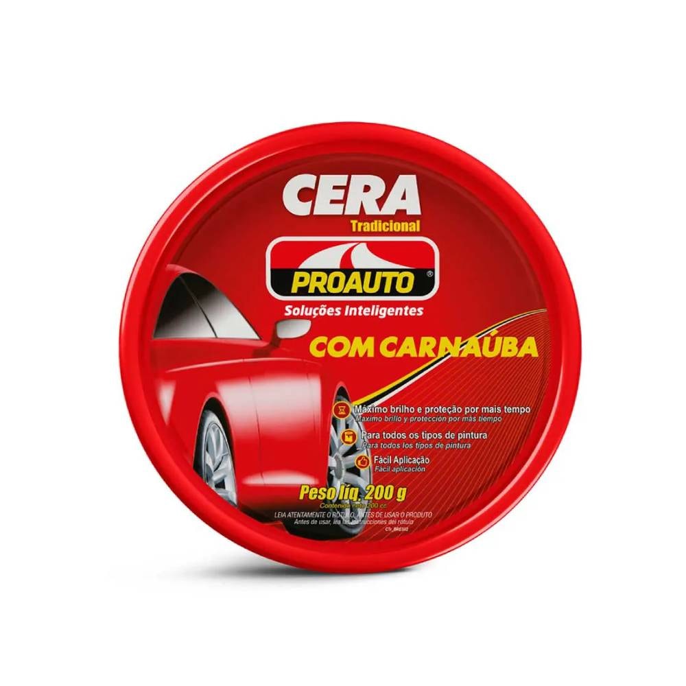 A Cera Tradicional Proauto proporciona maior brilho e proteção à pintura de veículos. Remove manchas pequenos riscos e tinta oxidada. Sua fórmula com Carnaúba e silicones especiais forma uma película protetora que repele a sujeira e protege contra as ações do tempo (sol, chuva, maresia, e etc.). Indicado para todos os tipos de pintura.
