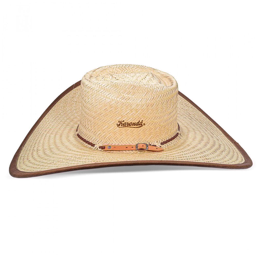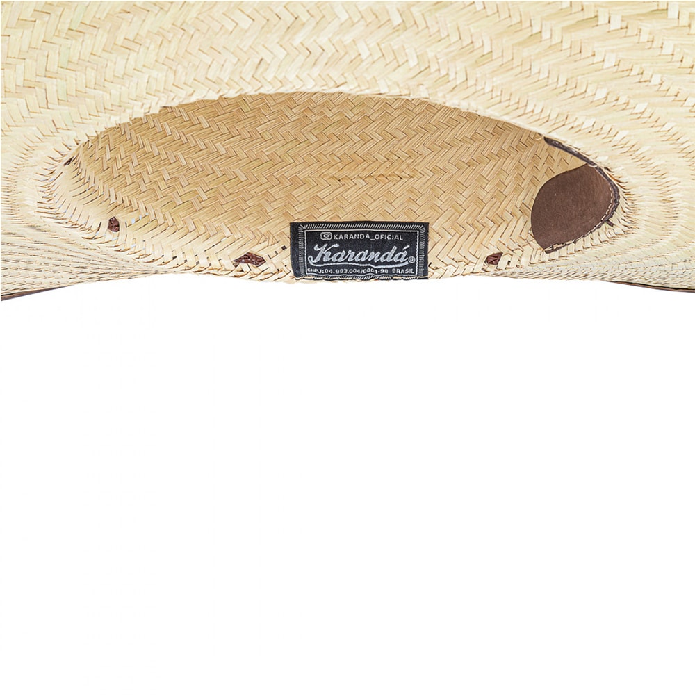 Detalhes do Produto O Chapéu Karandá é confeccionada em palha Carnaúba e modelado em forma Rubi. Possui orla aramada em matrial sintético e suador em recouro. A bandana é feita em fitilho trançado com fivela metálica o couro preso na fivela pode variar de cor.