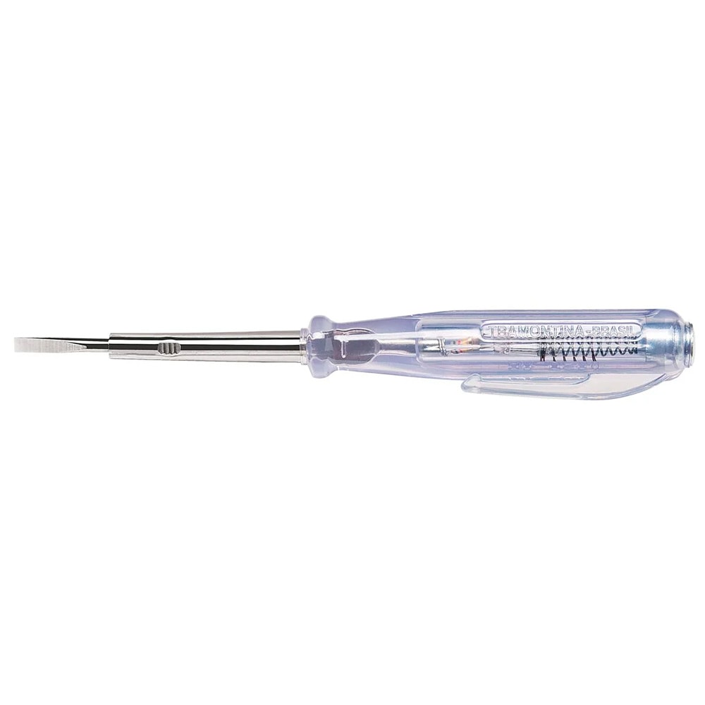 A Chave Teste Tramontina MASTER com Ponta Chata 1/8x3 Polegadas em Aço Especial traz mais segurança e qualidade para as tarefas na construção civil ou pequenos reparos. Projetada para verificar a presença ou não de corrente elétrica em instalações, ela é a melhor companhia para o trabalho dos eletricistas. Possui 1/8x3 polegadas e capacidade de 80-250 V. É uma chave teste com ponta cruzada feita em materiais de qualidade. A haste é produzida em aço especial temperado e possui acabamento niquelado, tornando ela ainda um item diferenciado. É uma ferramenta ideal para ter sempre por perto!