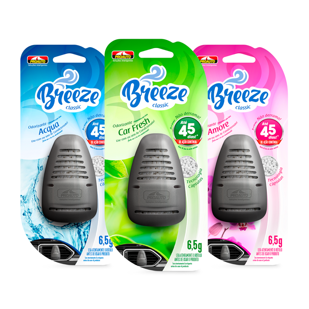 Com 03 versões de perfume em 65g, o Breeze Classic deixa seu carro com agradável aroma, proporcionando mais conforto em seu dia-a-dia.