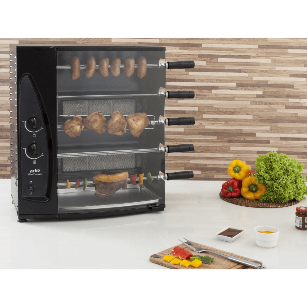 -Sistema de rotação de espetos: permite assar de forma homogênea todos os tipos de carne. Seu alimento fica muito mais saboroso.