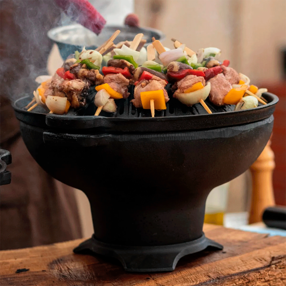 Embora a Churrasqueira Gengis-kan tenha raízes em métodos de grelhado tradicionais, ela foi desenvolvida com as necessidades modernas em mente. Seu uso é prático e intuitivo, e a estrutura robusta é otimizada para ser eficiente com qualquer tipo de carvão ou outra fonte de calor, adaptando-se facilmente a diferentes ambientes, sejam eles residenciais ou comerciais.