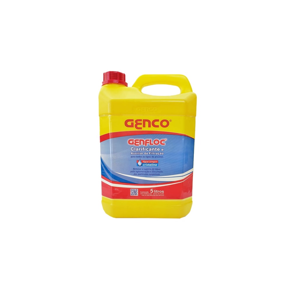 GENFLOC Clarificante e Auxiliar de Filtração GENCO® é um eficiente clarificante a auxiliar de filtração para águas de piscinas. Sua ação floculante atrai eletrostaticamente as partículas de sujeira que normalmente passariam pelo meio filtrante e forma com elas flóculos grandes que o filtro passa a reter. Isso aumenta o rendimento do filtro. Os flocos maiores e mais pesados decantam para o fundo da piscina de onde podem ser aspirados normalmente. O resultado é a clarificação completa da água.