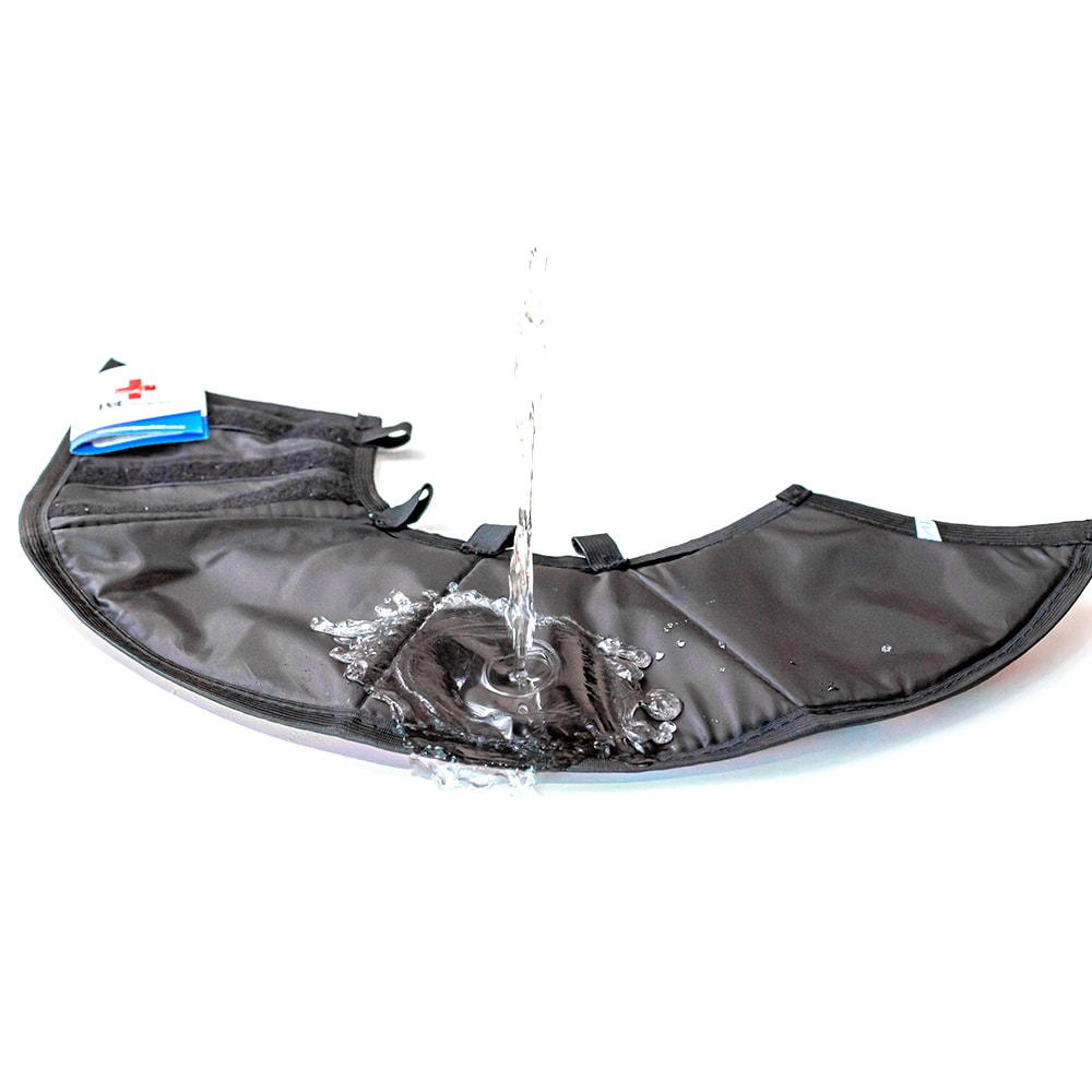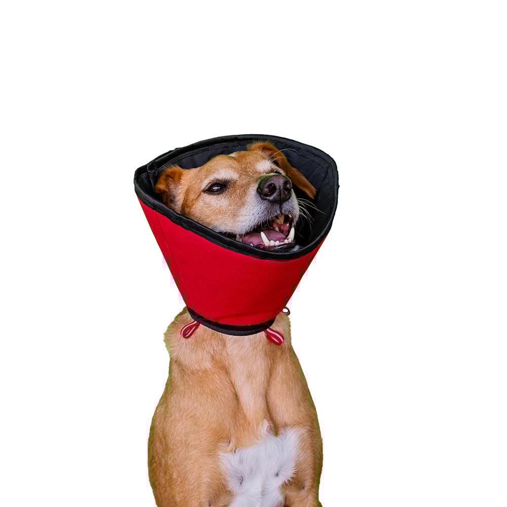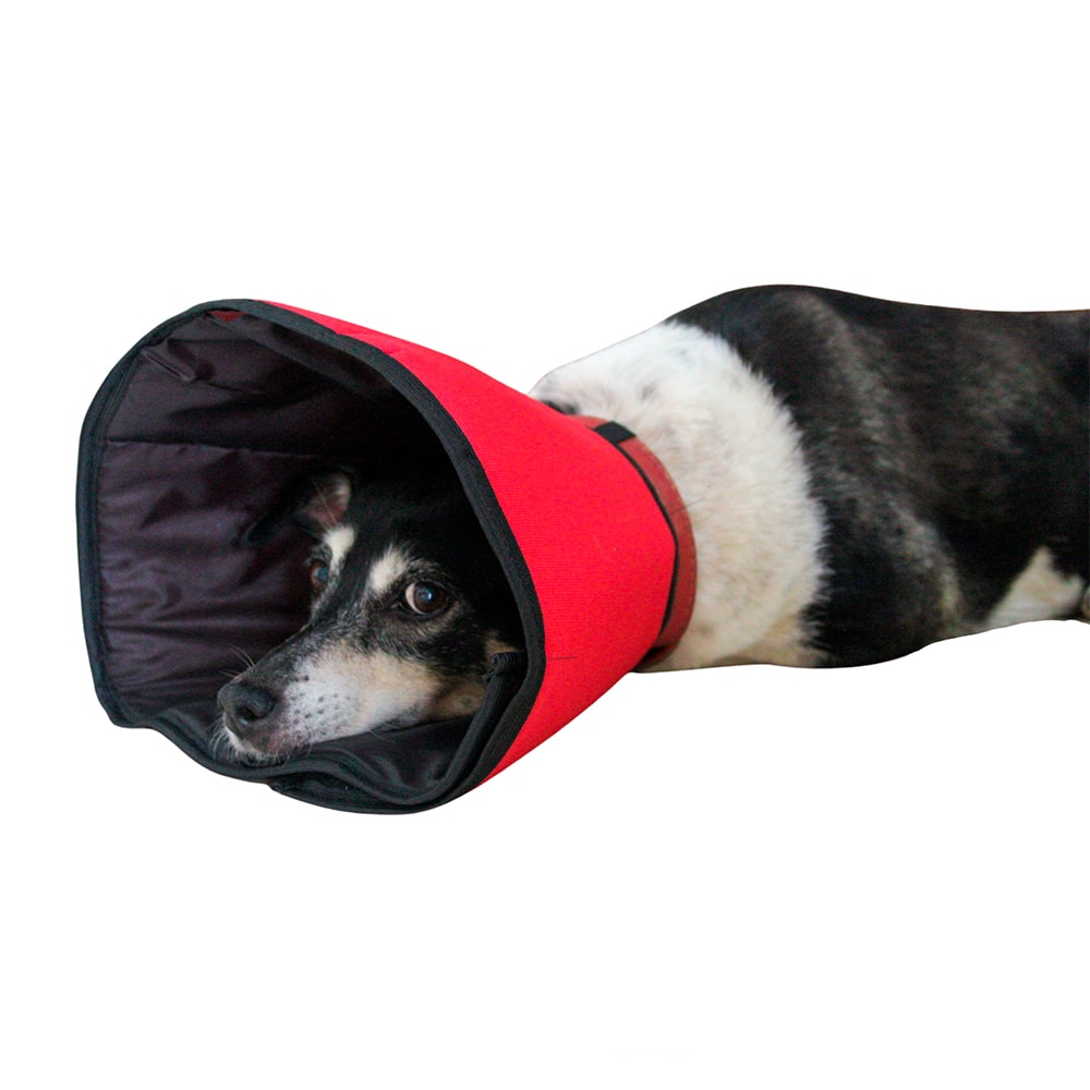 O sistema de fechamento com velcro de alta qualidade permite ajustes precisos, garantindo um encaixe seguro e adaptável a diferentes tamanhos e formatos de pescoço. Além disso, o colar possui alças elásticas na parte inferior, por onde se deve passar a coleira do animal, impedindo que ele remova o colar com facilidade.