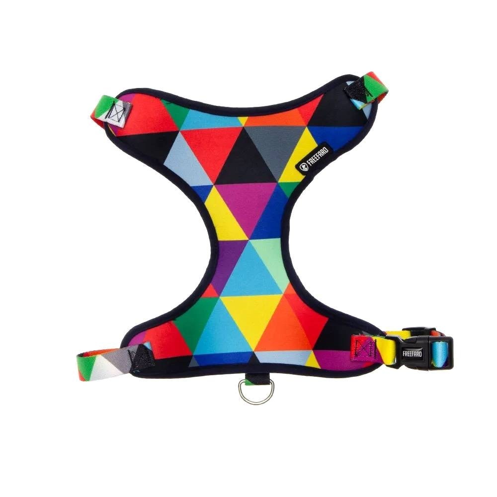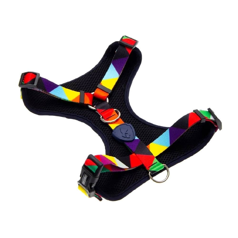 Detalhes do Produto A estampa Colors é a linha fun do seu pet. Inspirada em nossa diversidade, ela traz cores alegres como amarelo, vermelho, roxo e laranja, formando triângulos em sua composição final.