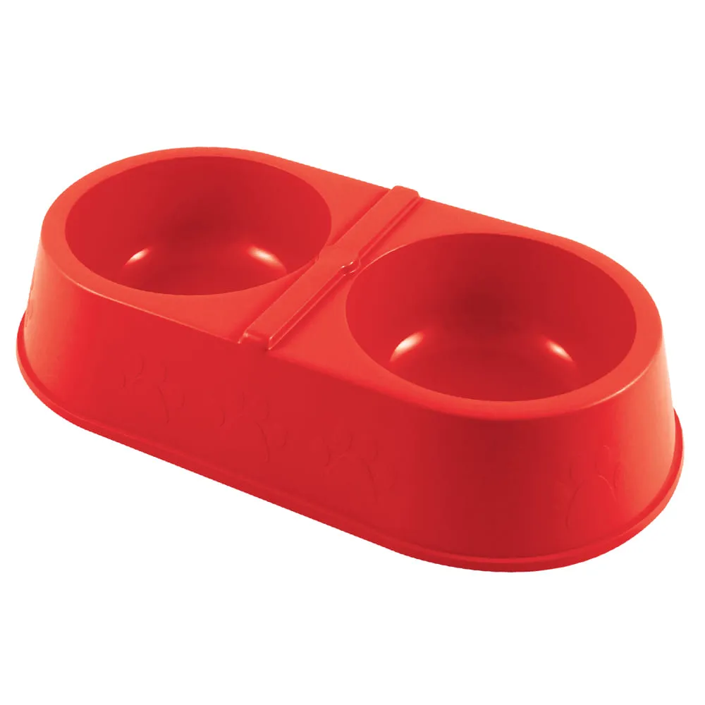 Com o Comedouro Duplo Patinhas Vermelho 2x450ml da Pet Injet, a hora da refeição do seu pet será mais prática, divertida e higiênica!