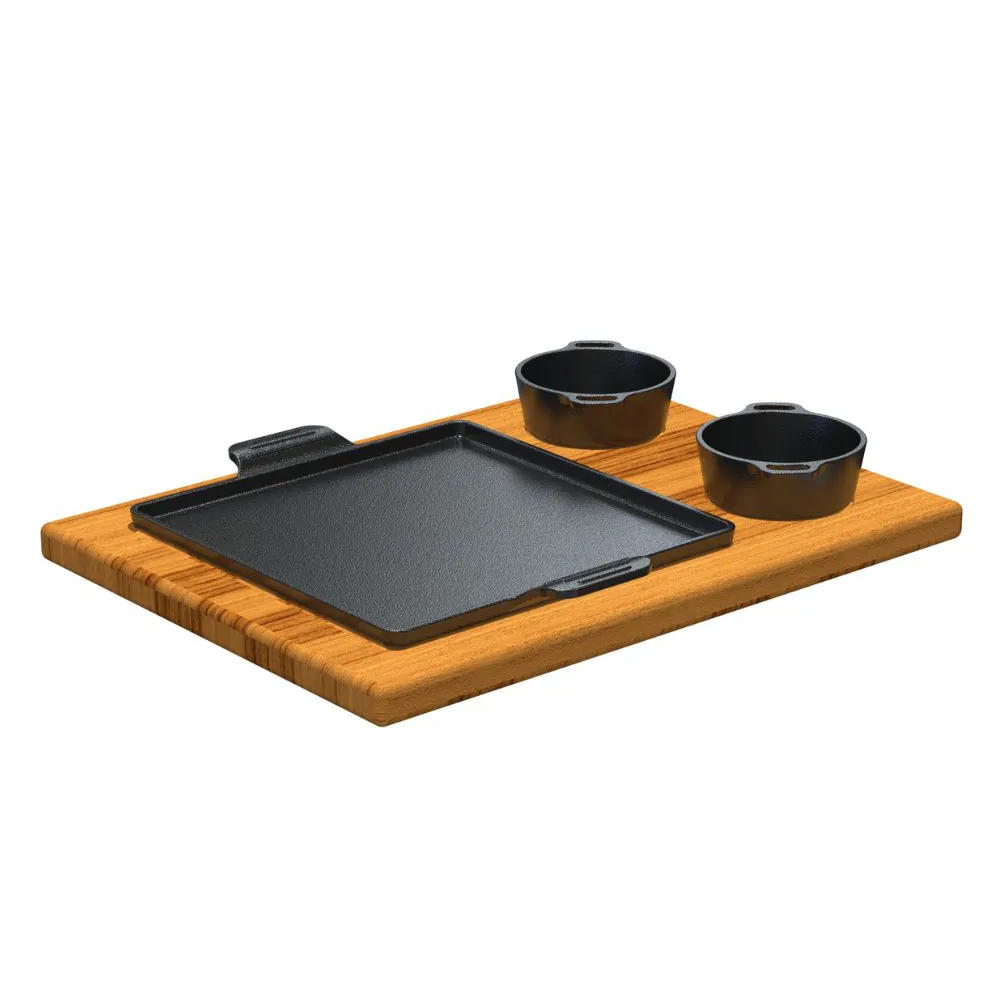 Conjunto Bifeteira + 2 Panelas Pequenas em Ferro com Suporte de Madeira Fundição Libaneza 93880