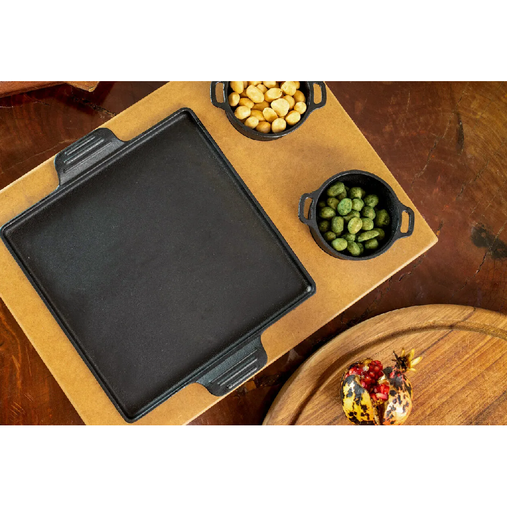 Armazenamento: Guarde o conjunto em local seco e arejado, protegido da umidade, para evitar a formação de ferrugem e prolongar sua vida útil. Transforme sua Cozinha Prepare refeições deliciosas e sirva com estilo utilizando o Conjunto Bifeteira + 2 Panelas Pequenas em Ferro com Suporte de Madeira da Fundição Libaneza. Surpreenda sua família e seus convidados com pratos saborosos e bem-apresentados, enquanto desfruta da durabilidade e versatilidade que apenas o ferro fundido pode oferecer. Adquira já o seu e eleve o nível da sua cozinha! Você já conhece a Agrosolo?Código de Barras 7898180349384