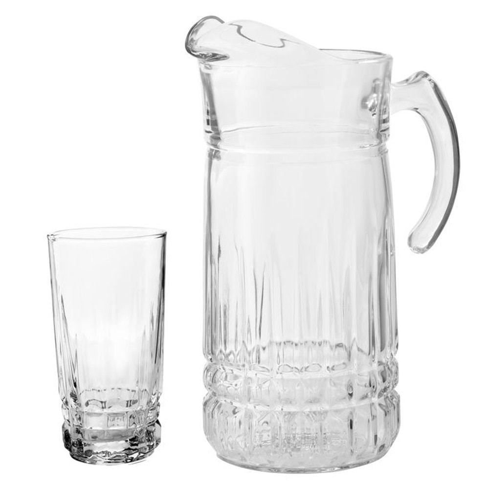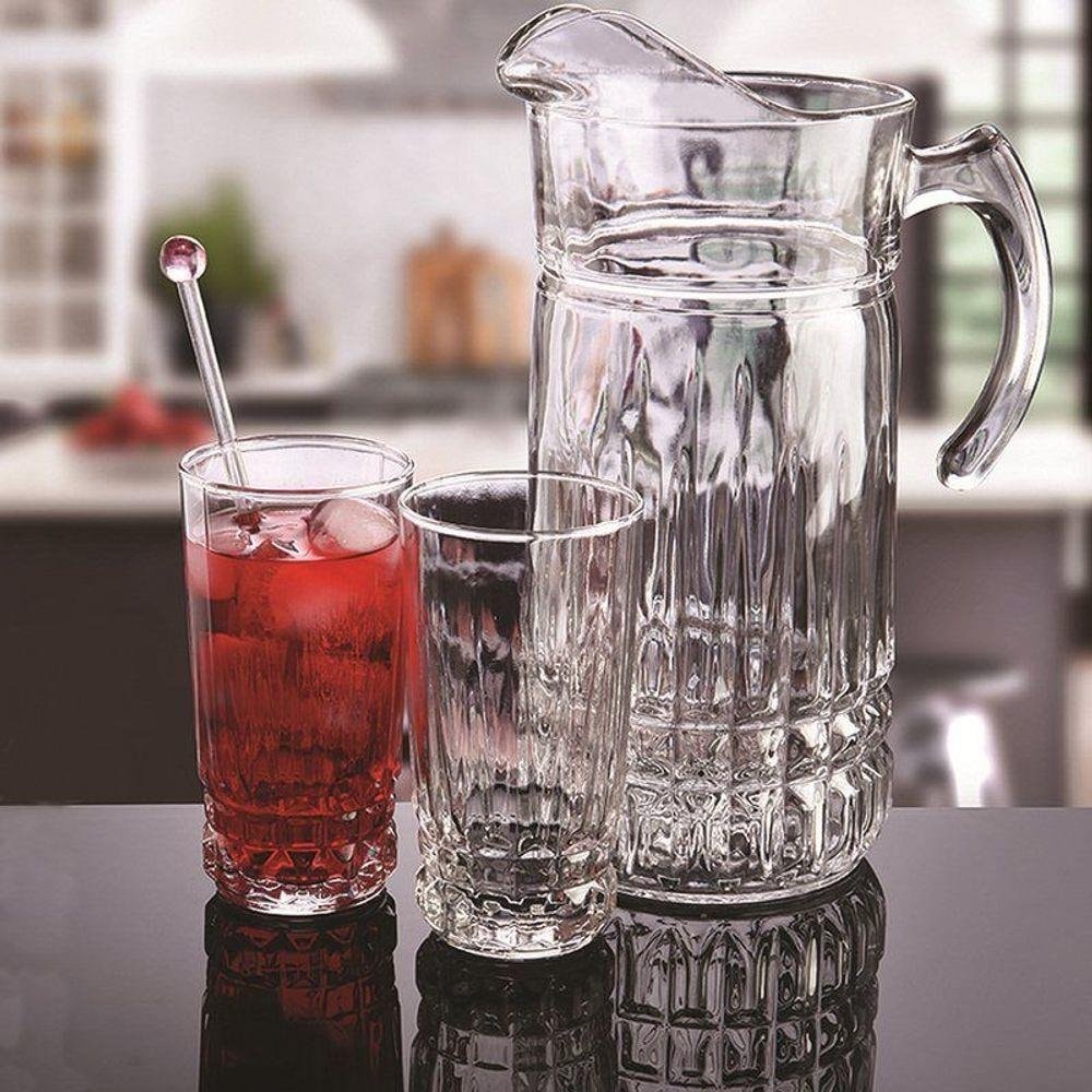 O Conjunto New Empire da Class Home é composto de uma estilosa jarra e mais 6 copos, ambos com detalhes sofisticados que combinam com qualquer momento de refeição onde a bebida não pode faltar.