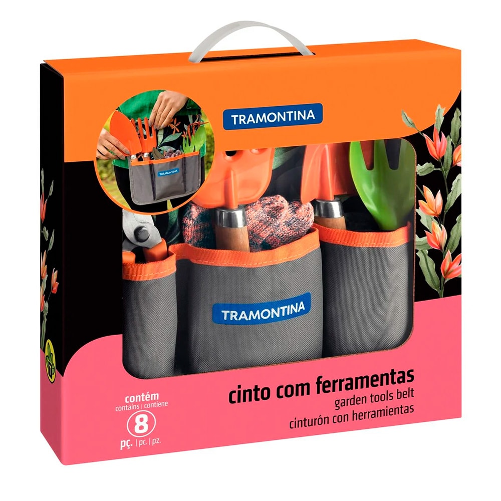 Detalhes do Produto O cuidado e a manutenção do seu jardim estarão completos com o conjunto para jardinagem Tramontina com cinto 8 peças. Cada ferramenta possui características únicas para realizar a manutenção do seu jardim. Leves e práticas, elas acompanham uma linda embalagem litografada, perfeita para armazenar o kit de produtos. Cada cantinho ficará bem cuidado com esse conjunto, que pode ser um excelente presente para os amantes de flores e jardins.