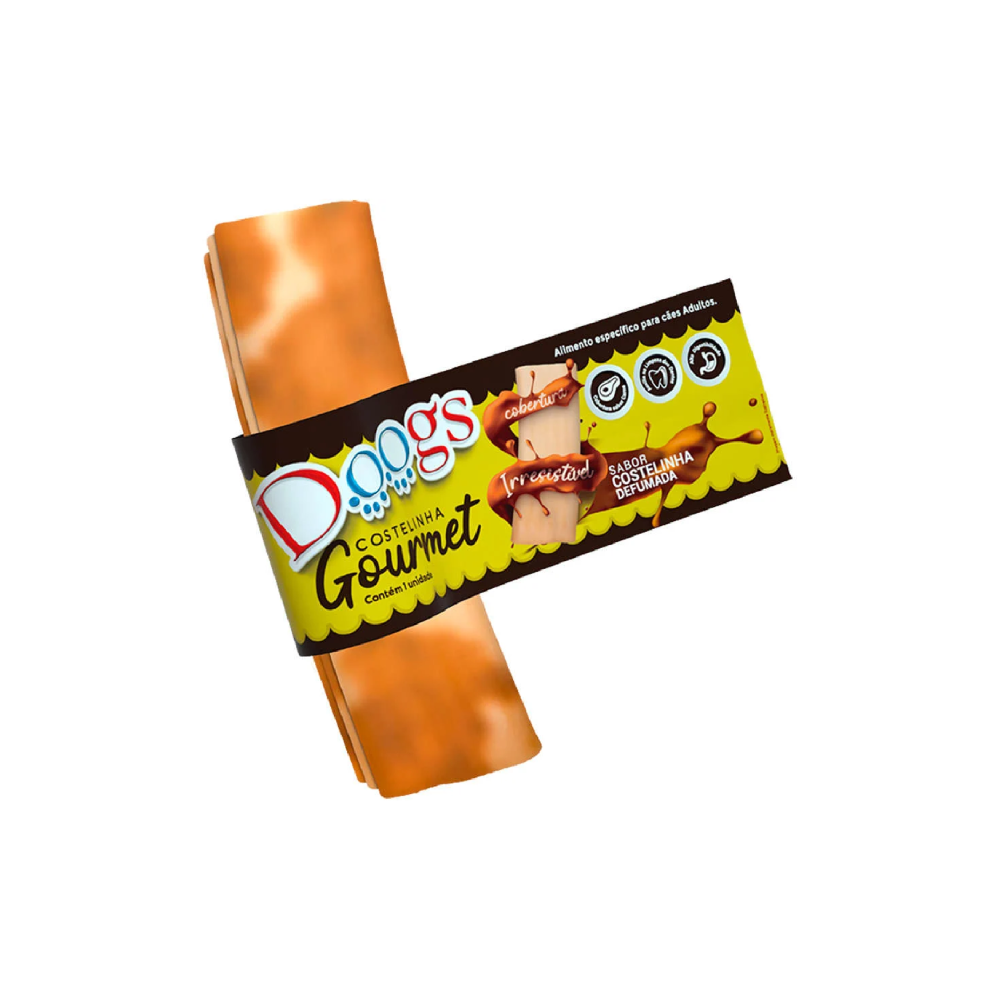 A composição da Costelinha Defumada Doogs pode variar, mas geralmente inclui: carne bovina, cartilagem, pele bovina, sal, açúcar, fumaça líquida e aditivos naturais.